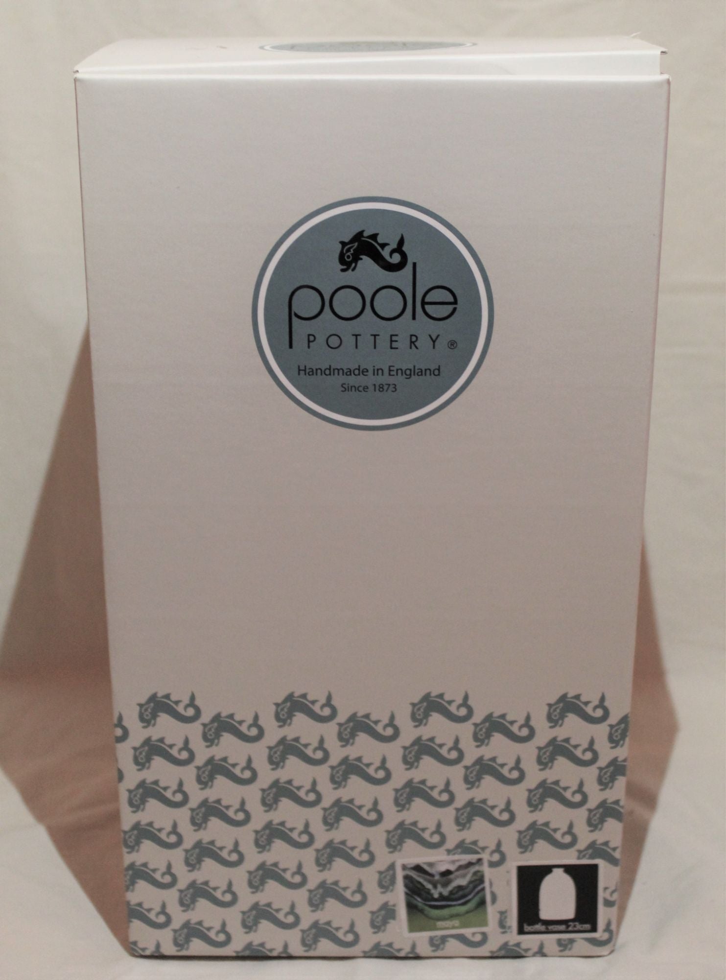 Please note, the 28cm bottle vase in the Maya design is a discontinued shape and no longer available for purchase on the Poole Pottery website.
