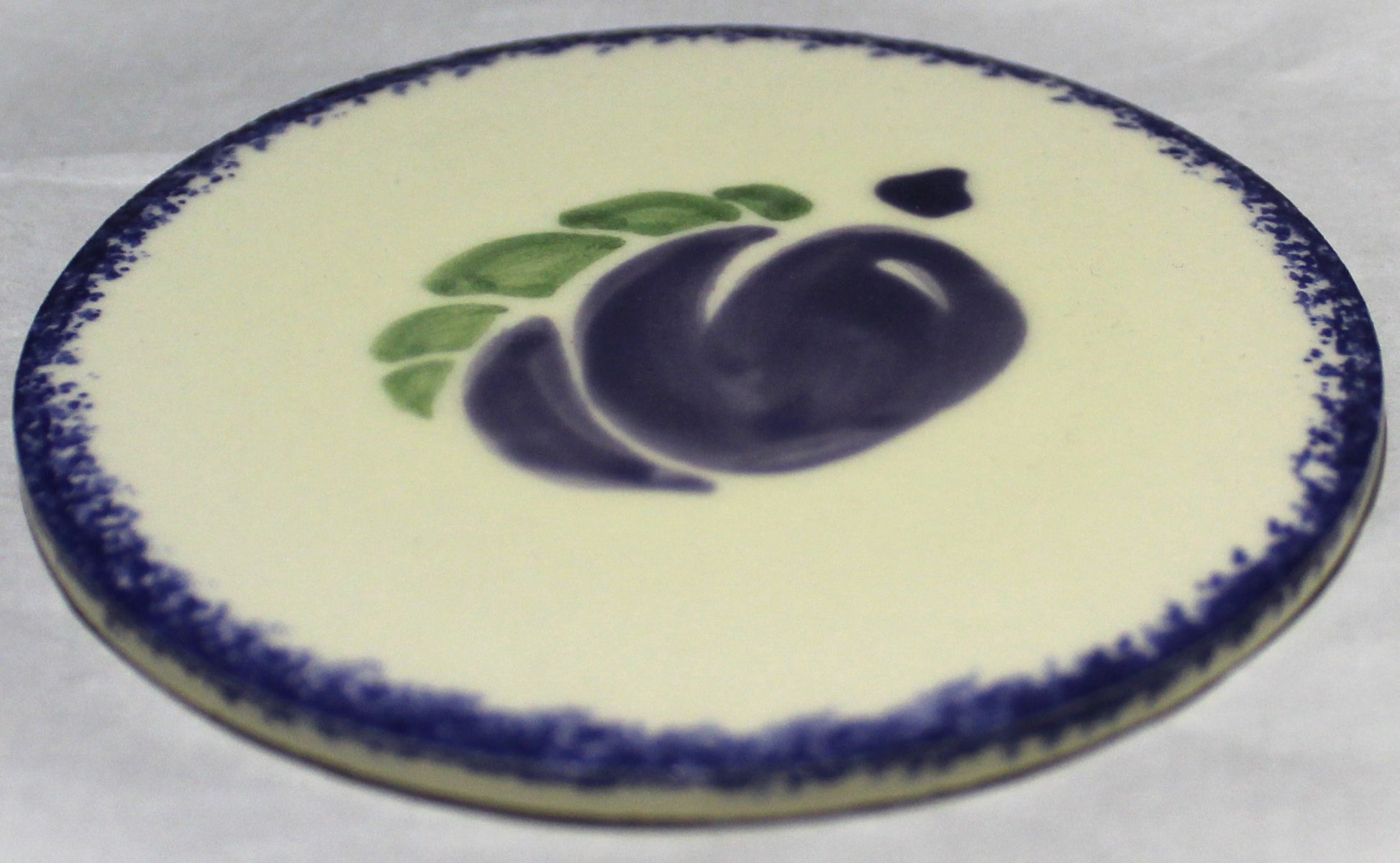Ceramic hand painted coaster cork backed for protection - Studio Poole Dorset Fruits design - Plums