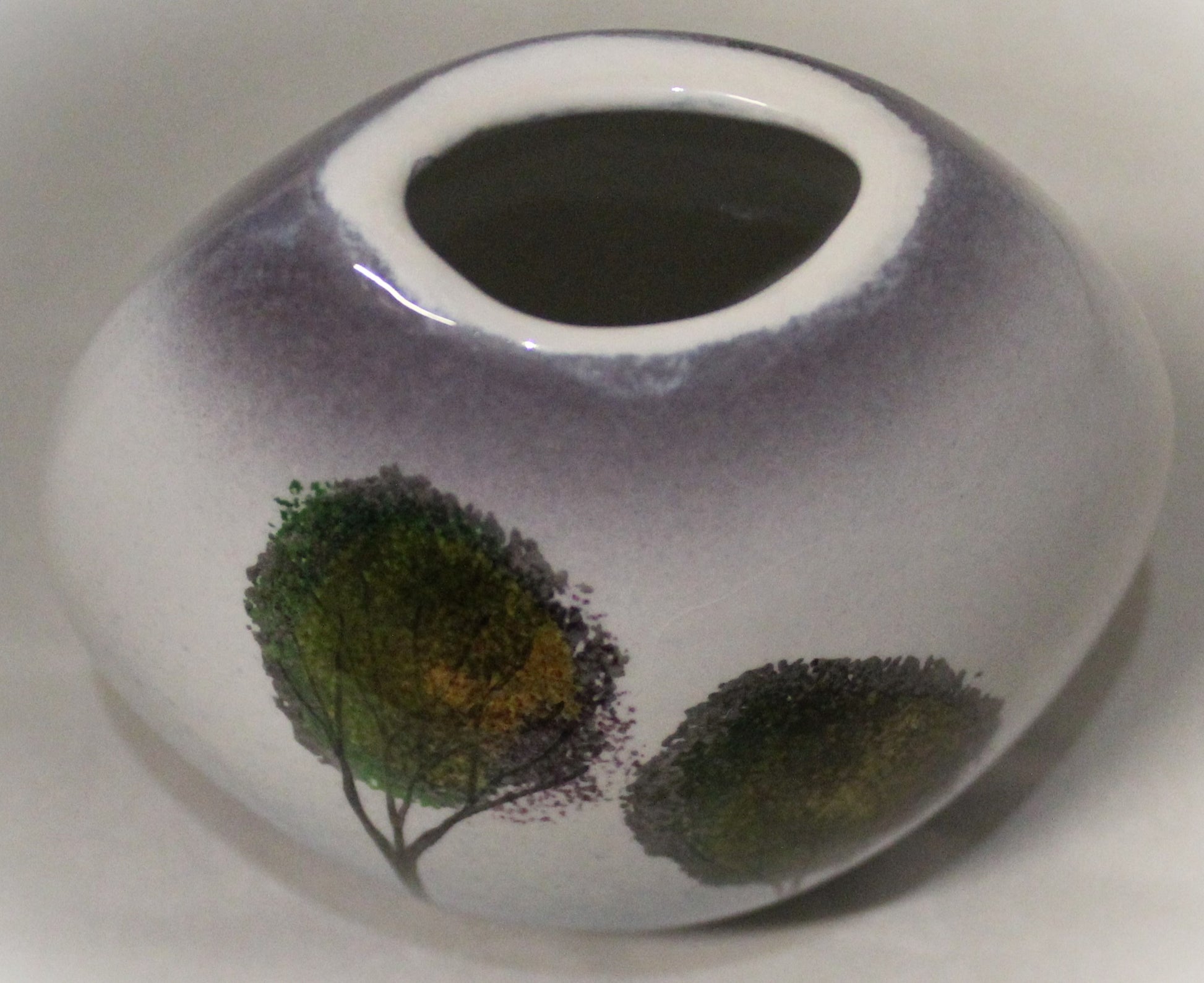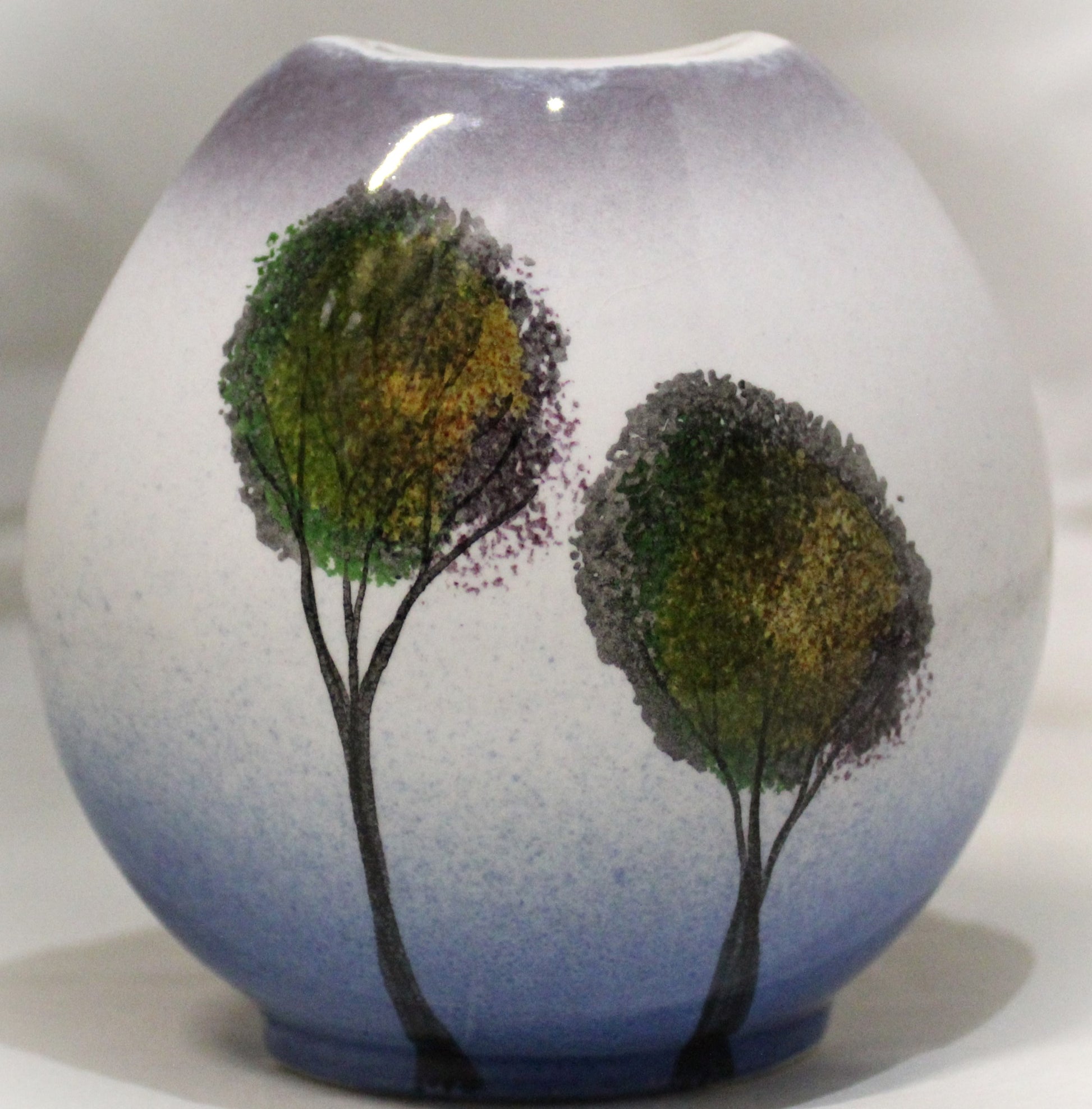 A lovely, unique, hand-thrown, mini purse vase made to match the Trees in the Mist range.