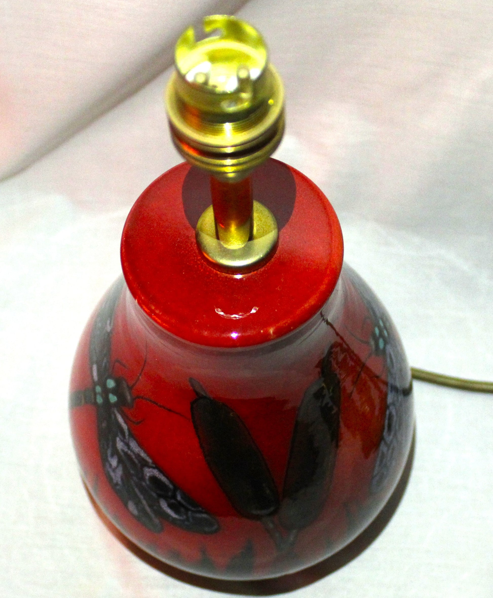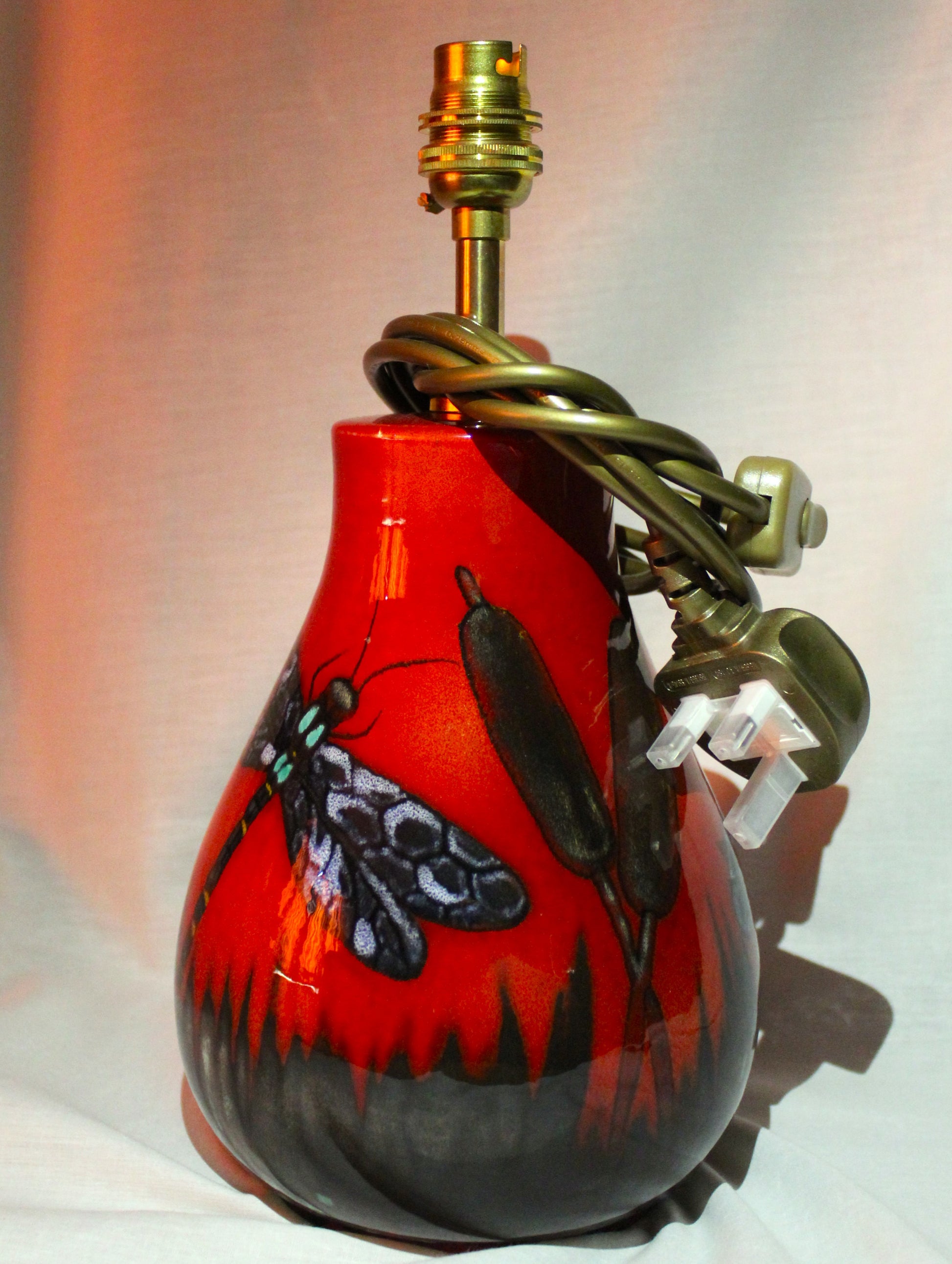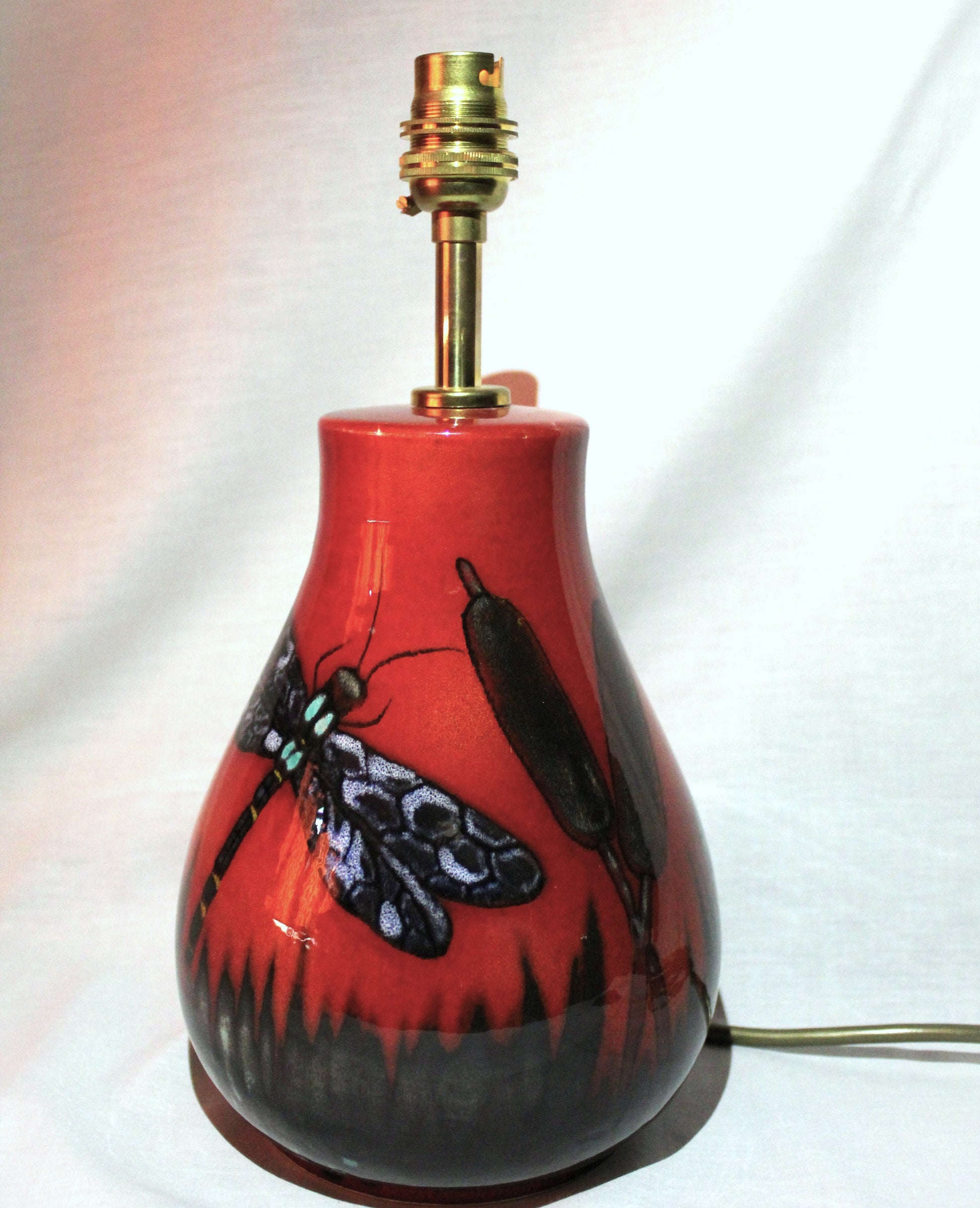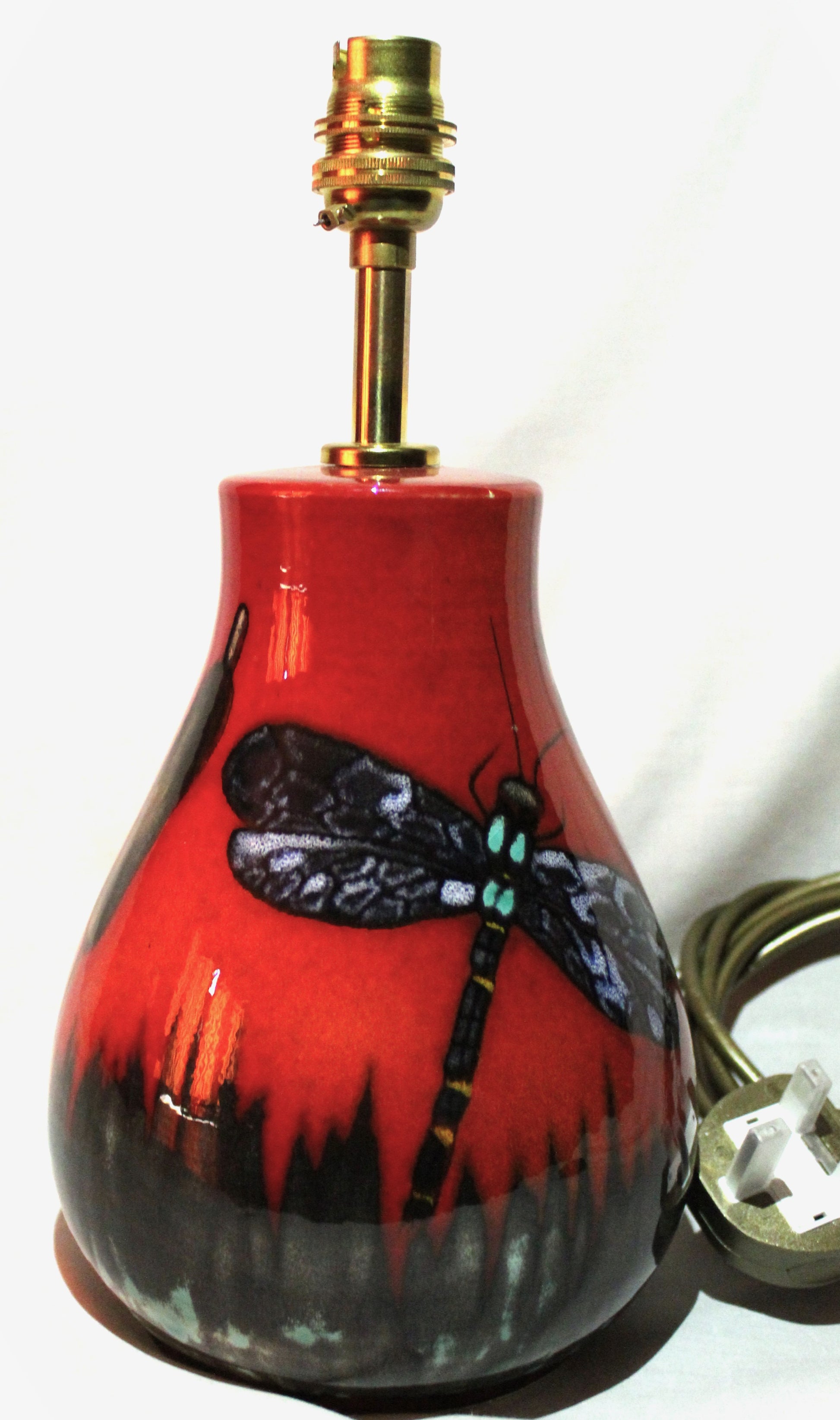 Shed a little light with this hand-thrown wired lamp base, decorated with a one-off Dragonfly design.