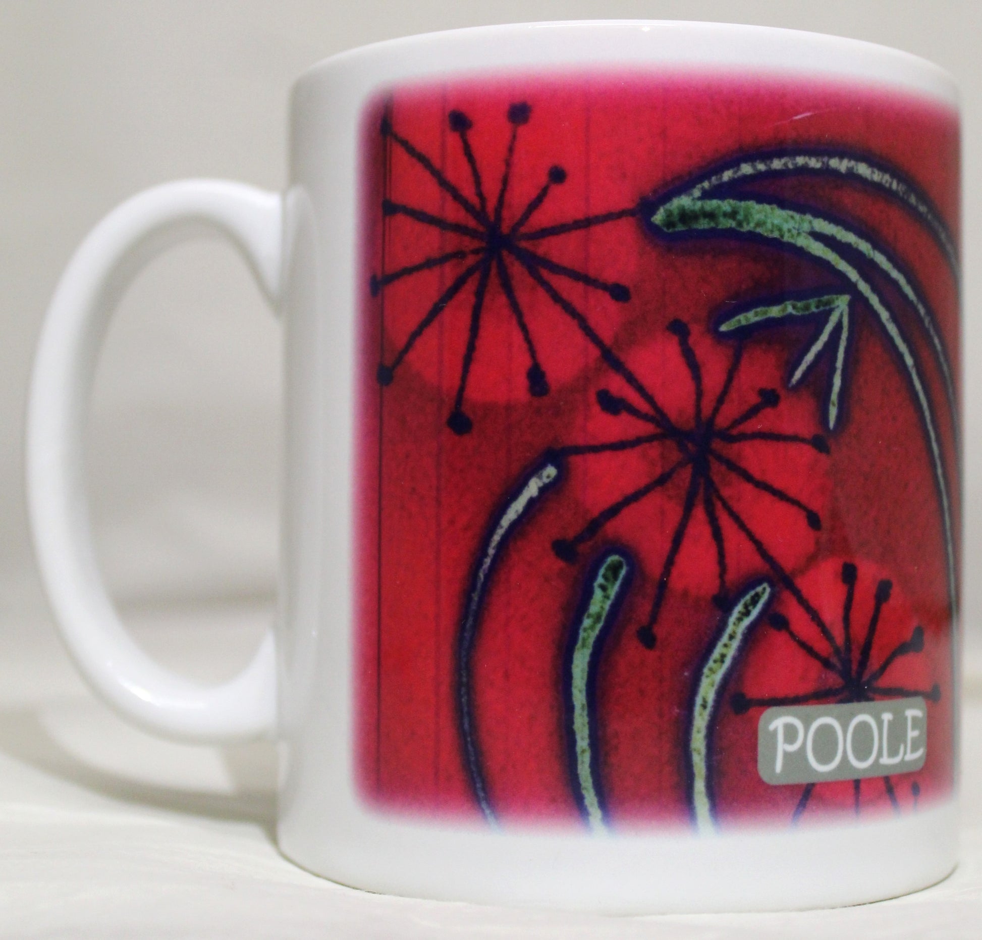 Our sublimation mugs may come with or without the word "Poole" printed in the design.