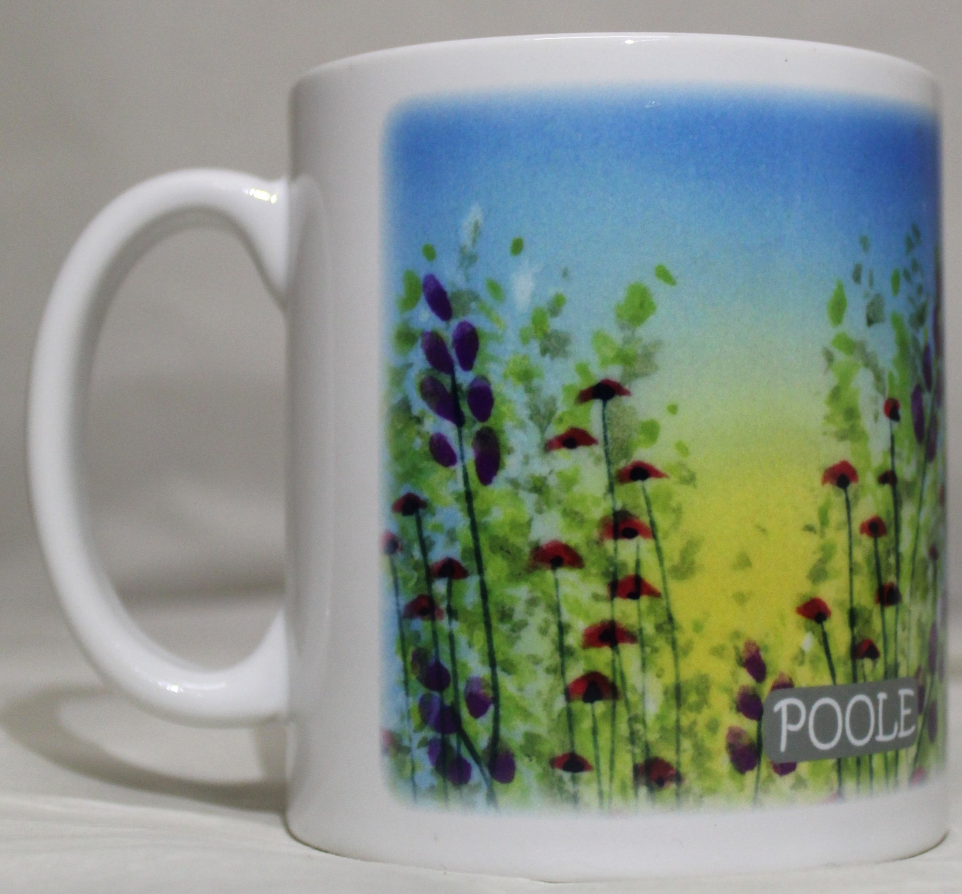 Our sublimation mugs may come with or without the word "Poole" printed in the design.