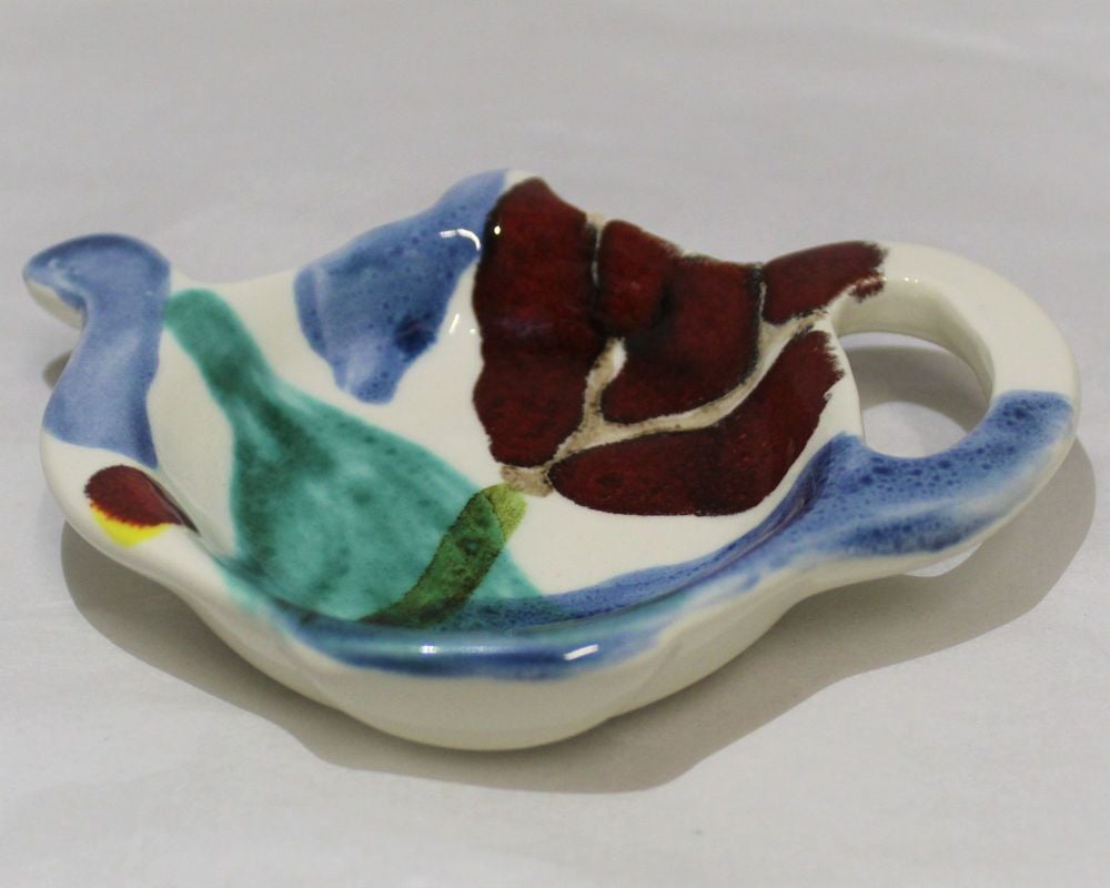 A Tea Bag Tidy hand-painted with the Poppy design by Janice Tchalenko.